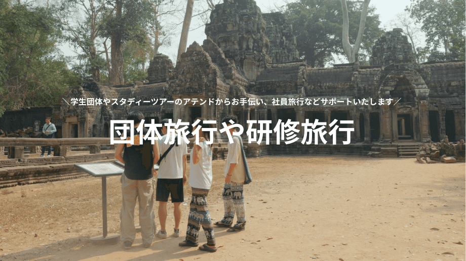 空港送迎やアンコールワットなどの観光地ツアーのほか、アプサラダンスやカンボジア料理教室等の体験アクティビティなど、お客様のスタイルに合わせて幅広くサポートします。