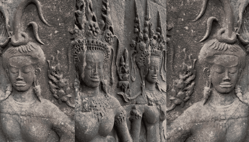 アンコールワットのアプサラは、衣装や髪型が細かく表現されており、クメール芸術の代表的な彫刻とされています。