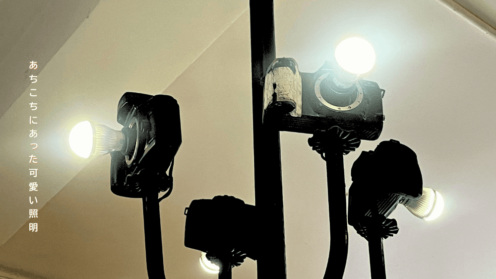 カメラを使った可愛らしい照明があちこちに。
