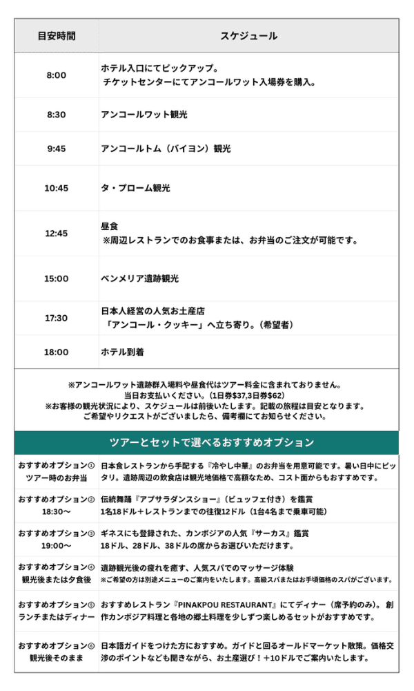 ※雨季は朝日の時間帯に雨が降ることがありますが、朝日以外の観光は通常通り行えます。