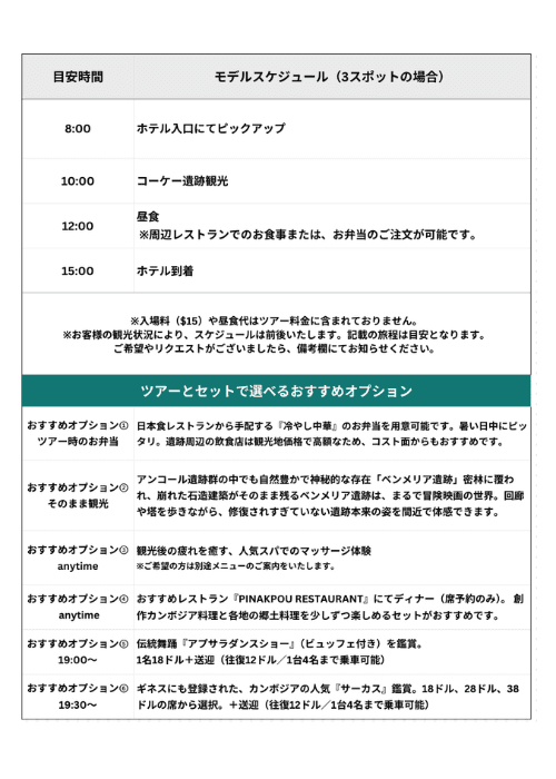 ※直前予約の場合、ガイド・車両の空き状況によりご希望に添えない場合がございます。